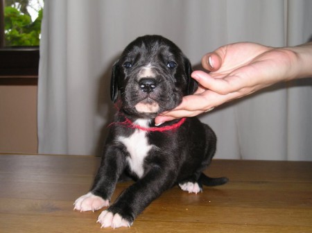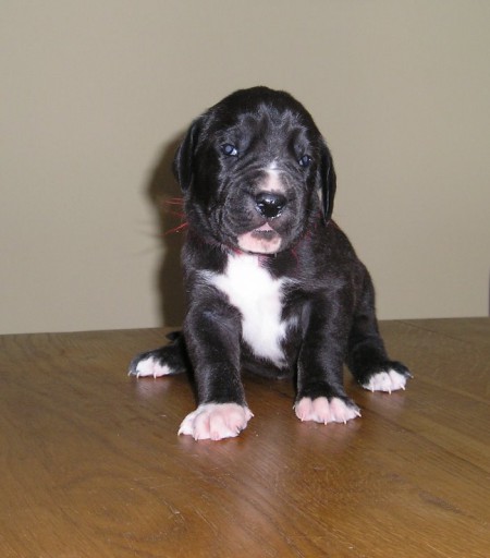 Jinak vypadá, že z ní bude velká holka, tlapky má jak medvídek, ale nepostrádá ani holčičí vzezření, což je při vystavování neméně důležité.